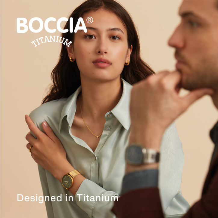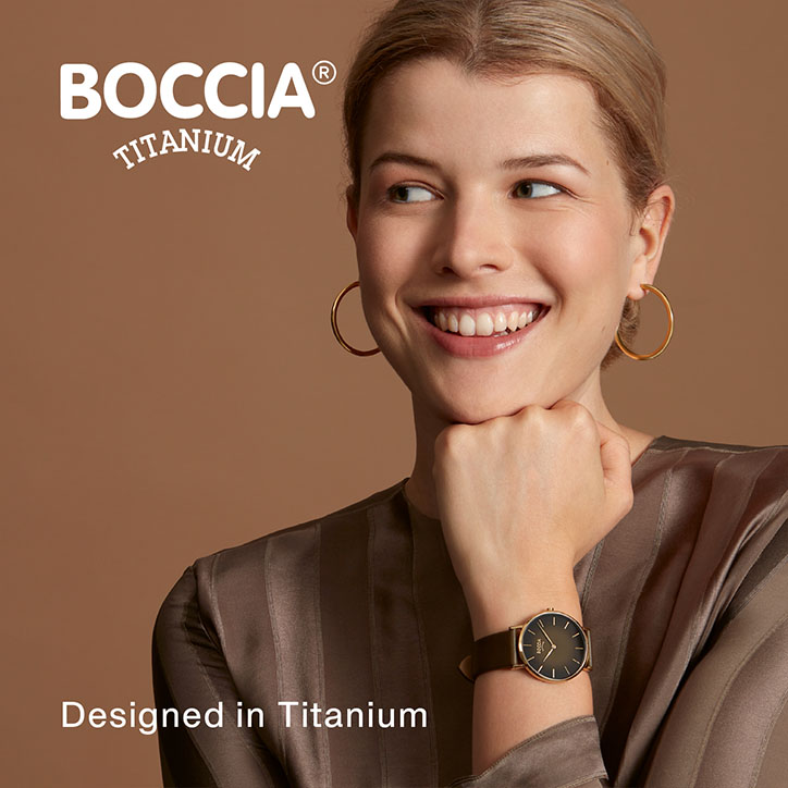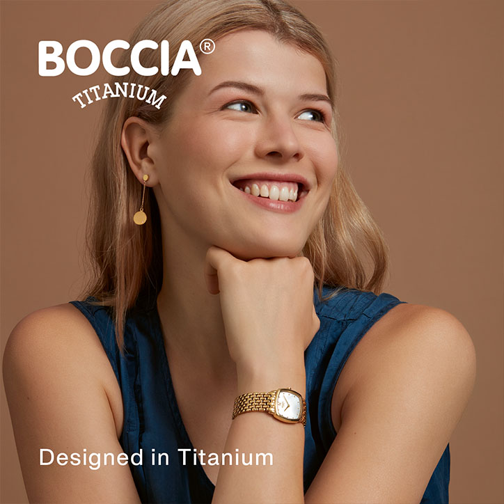 Von internationalen Designern entwickelt. Alle Titan-Bestandteile der BOCCIA TITANIUM Kollektion sind aus Reintitan gefertigt; dem besonderen Material. Es ist leicht, von hoher Festigkeit und absolut hautfreundlich. Zudem ist es korrosions- und temperaturbeständig. Alle Ceramic-Elemente sind aus Voll-Ceramic gefertigt, dem innovativen, besonders festen und hautverträglichen Material.